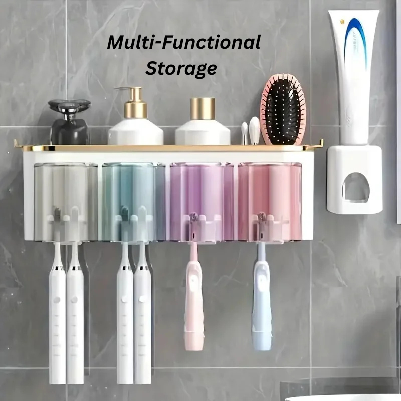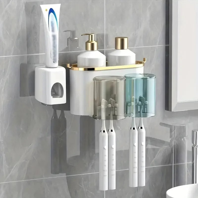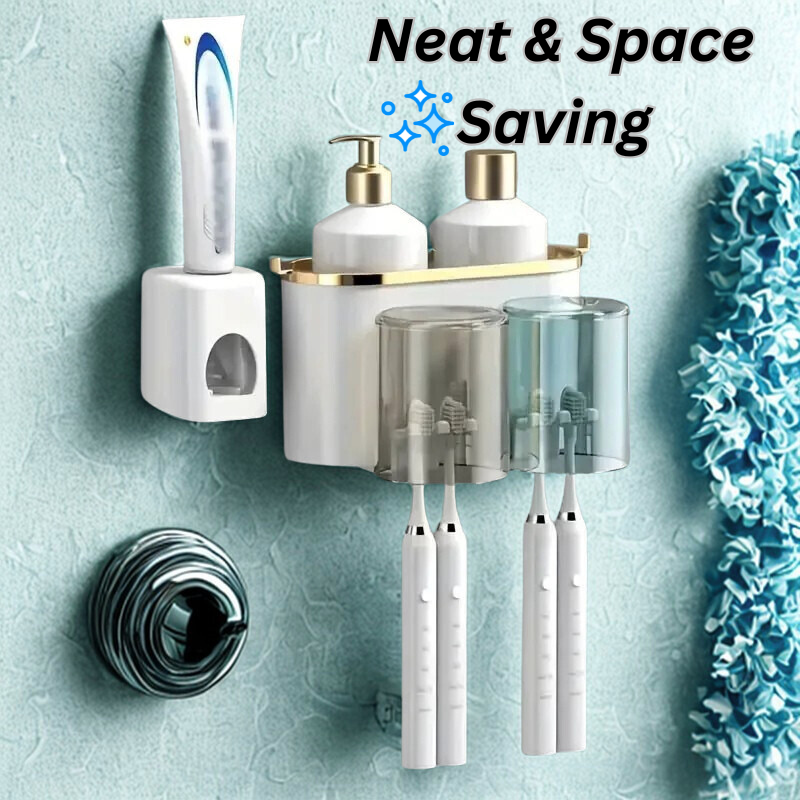 Let’s be honest, keeping the bathroom neat isn’t easy. Counters get crowded with toothpaste tubes, brushes, and bottles, and no matter how much you try, it never really feels clean or organized. Things like cups, bins, or shelves help a little, but they take up space and don’t solve the bigger problem of keeping everything tidy and hygienic. That’s why a smarter, more practical solution is needed — something that saves space, keeps your essentials clean, and makes your bathroom look modern and fresh. The Wall-Mounted Bathroom Organizer with Toothbrush Holder, Storage Compartment, and Toothpaste Squeezer does exactly that.